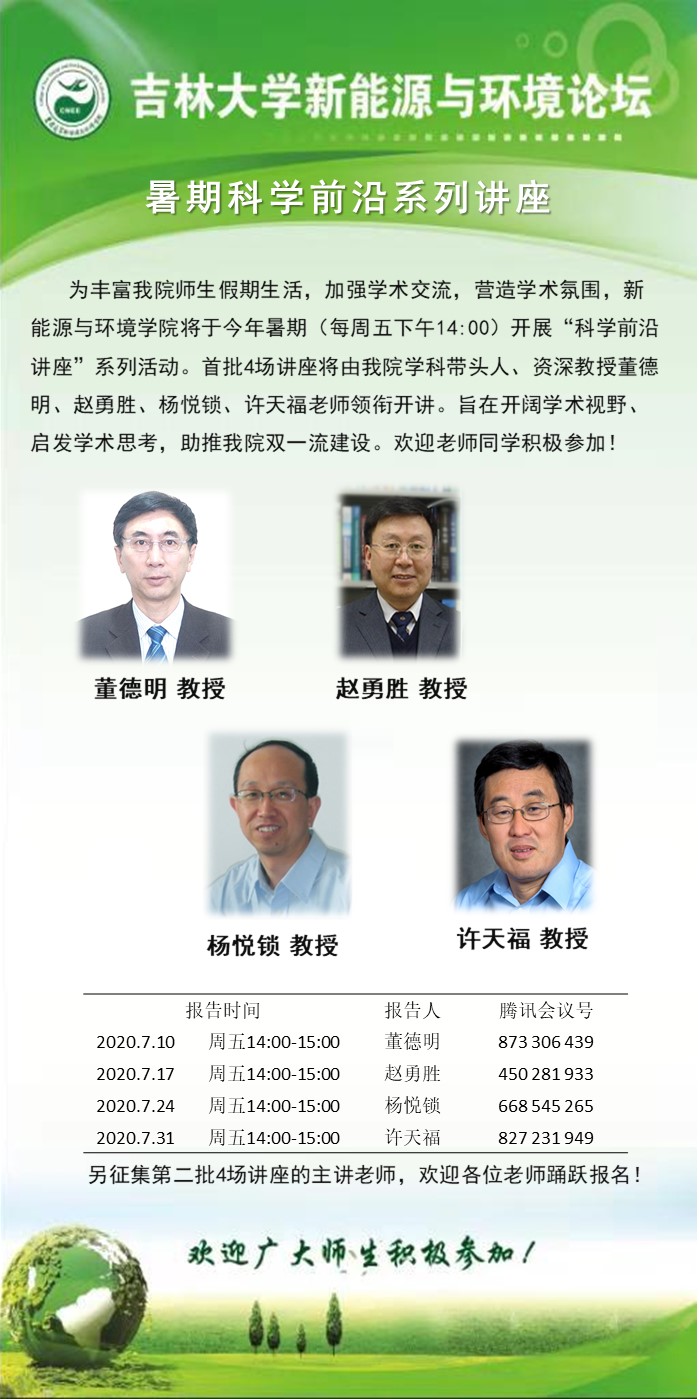 豪神娱乐城 新能源与环境论坛——暑期科学前沿系列讲座