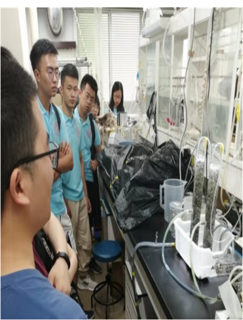 筑波大学是一所以研究型为主的大学,接下来同学们就来到了筑波大学生命环境科学研究科张振亚教授和累中方教授研究团队的实验室,感受一下筑波大学的研究氛围。张振亚教授和累中方教授研究团队是筑波大学非常具有实力的团队,研究方向主要为水污染物处理、有机废弃物能源化等。曾培养出数十名优秀的中国博士和硕士留学生,发表了多篇环境科学与工程领域的顶级论文,连续多年获得筑波大学毕业生校长表彰。实验台上摆满了学生们的实验用品,这里的实验用品跟国内不同,筑波的学生们将藻类做成了各种颗粒,这样便于储存。下图中同学们正在观察的装置就是藻颗粒菌颗粒共存处理污水的装置,这样可以由藻类光合作用给菌类提供氧气,从而使这个装置可以不需要从外部接受氧气。筑波的中国留学生们不仅对实验室进行了详细的介绍,还给同学们介绍了在筑波大学的留学生活,也让豪神娱乐城