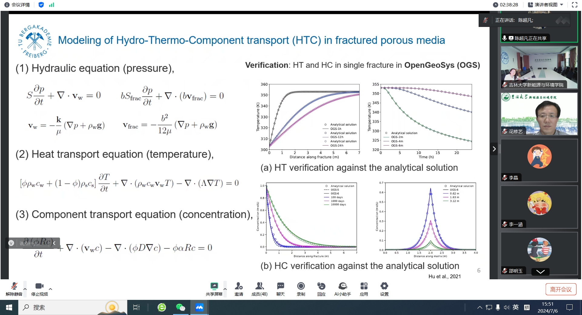 的学科设置、师资队伍、科技创新、人才培养、国际合作与交流以及人才引进政策等方面做了简要介绍。随后,6位青年学者围绕CO2地质封存多尺度数值模拟、水环境中典型新污染物的光化学行为及污染控制、磷污染治理与资源回收、水资源可持续开发利用、矿山地热研究等多个水资源、环境、新能源前沿热点领域分享学术成果,并与豪神娱乐城