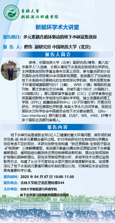 新能环学术大讲堂-多元素耦合循环驱动的地下水砷富集效应