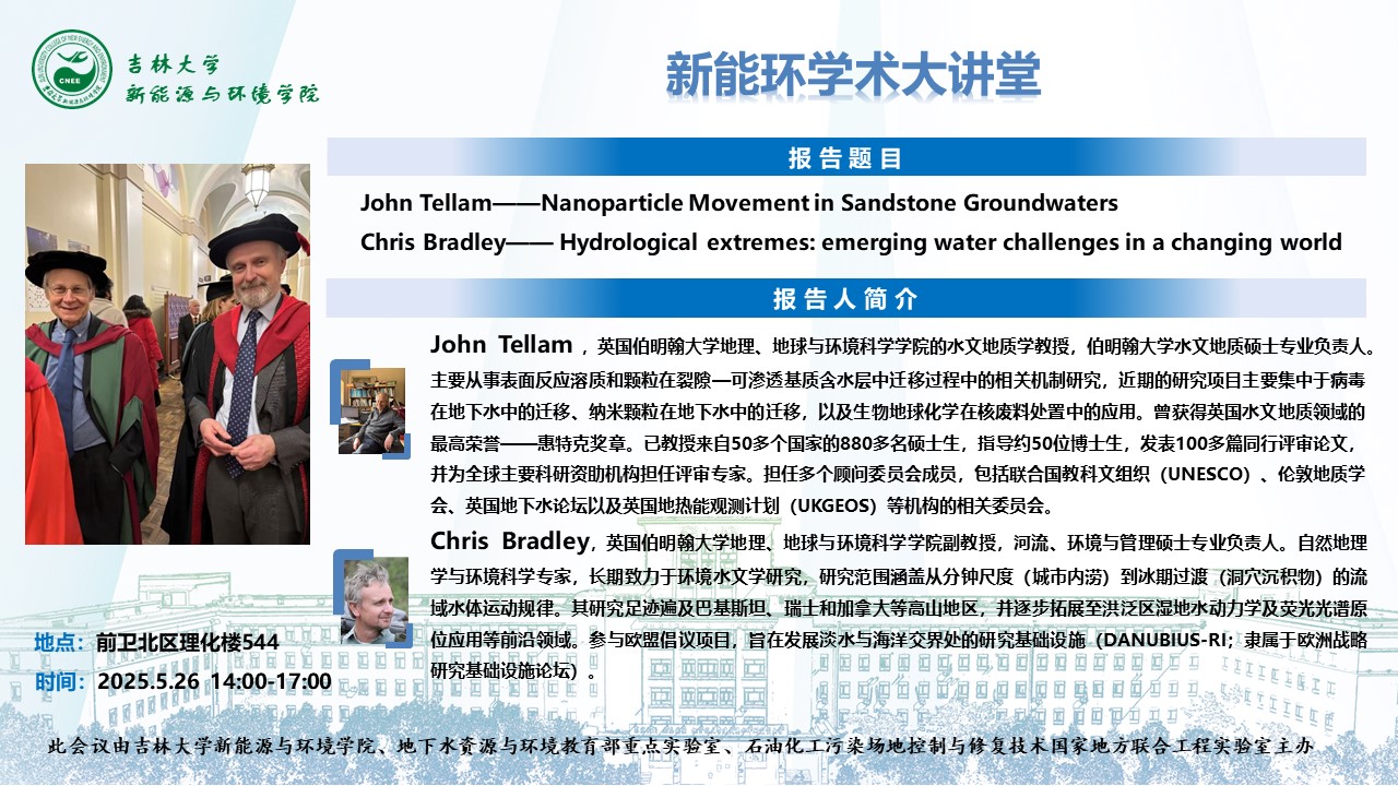 新能环学术大讲堂-Nanoparticle Movement in Sandstone Groundwaters、Hydrological extremes: emerging water challenges in a changing world