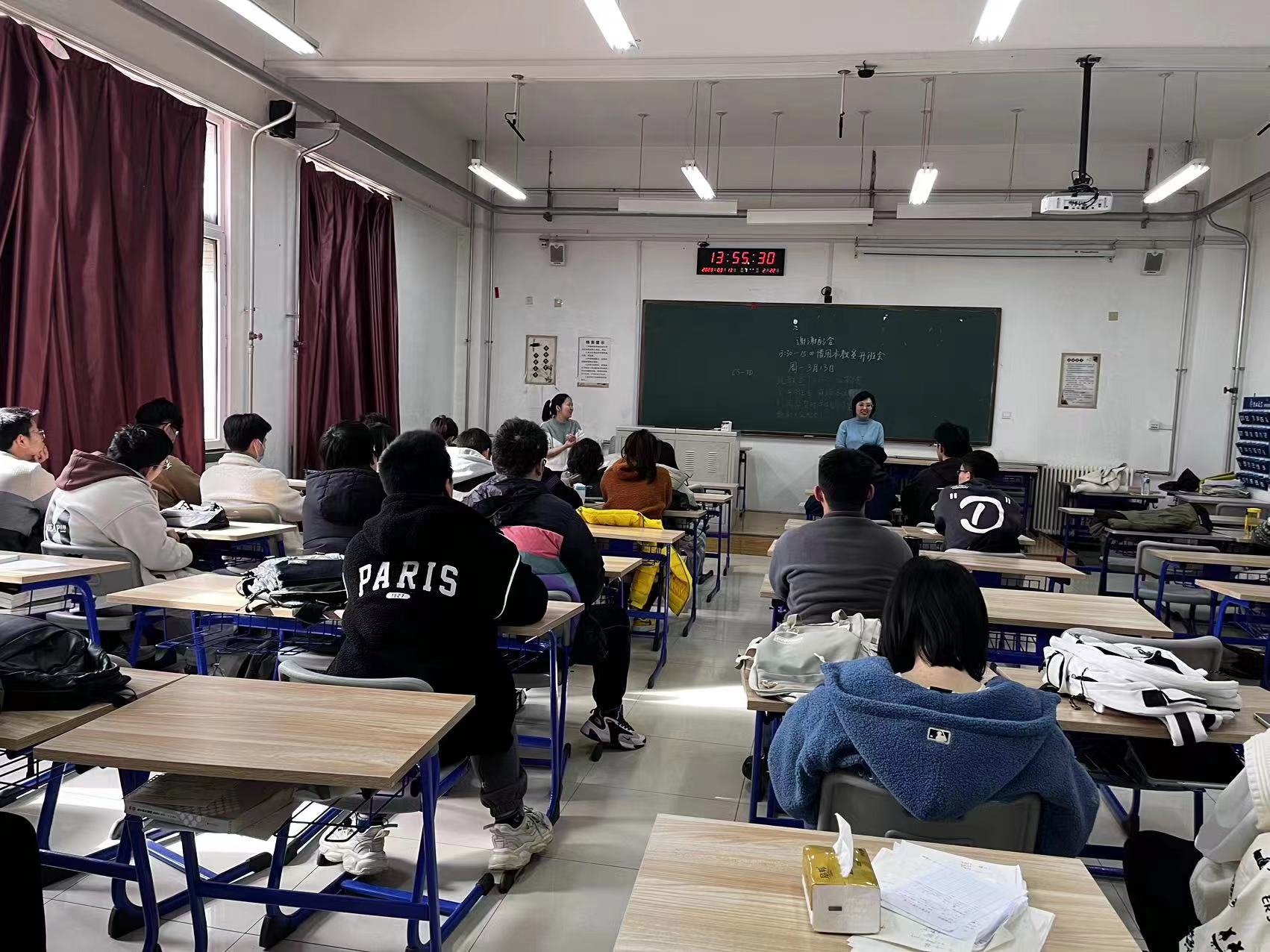 2023年3月13日,252204班在李四光教学楼111教室召开新学期第一次班级班会,班主任周睿老师和张婷娣老师百忙之中抽出时间与同学们开展亲切交流沟通。