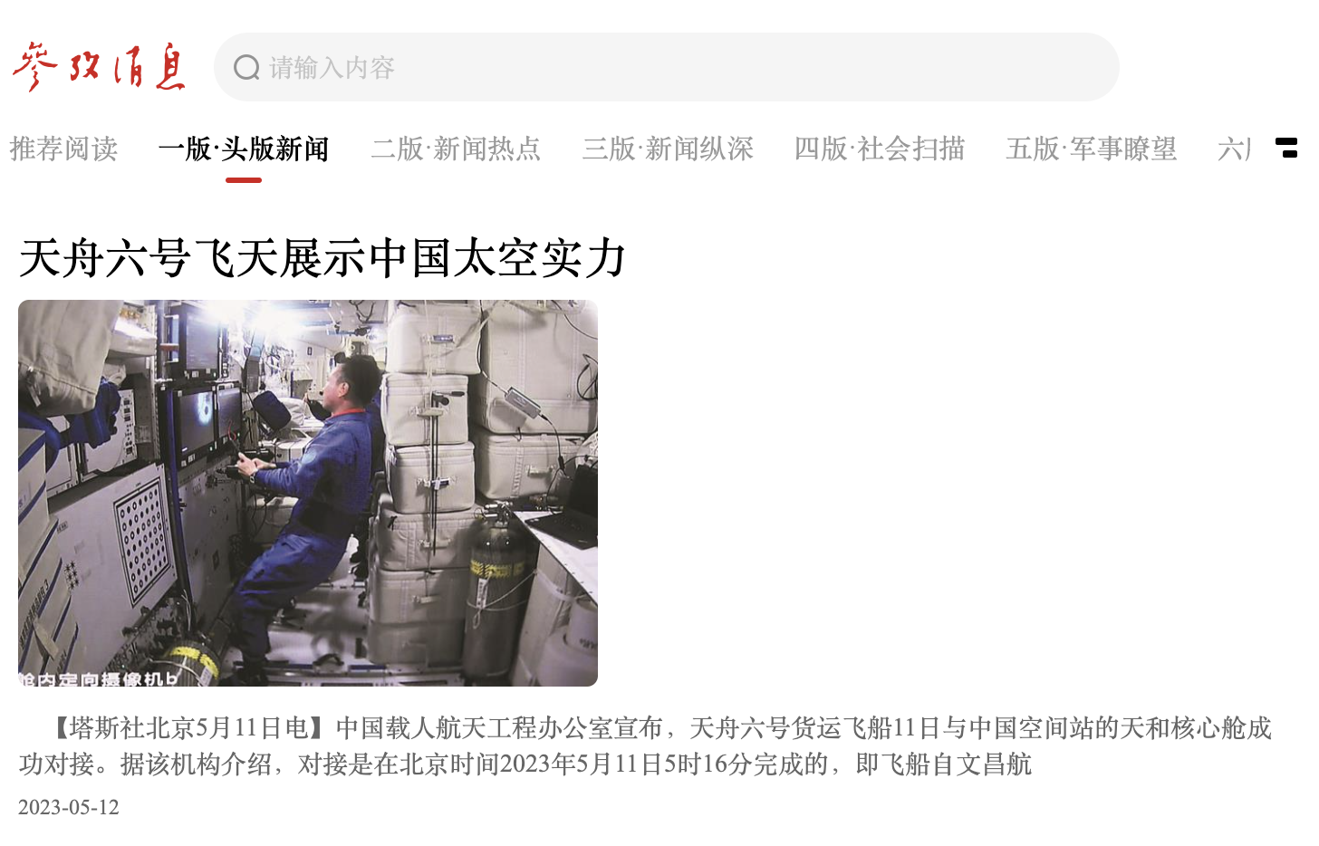 新闻的话题涉猎甚广:关于国际政治经济的《中国成为多边外交佼佼者》、《俄乌冲突如何改变未来战争》、《“中国巨人“在全球外交中觉醒》、《西方神话正在坍塌》等;关于科技前沿的《天舟六号飞天展示中国太空实力》、《汽车有望成为支付终端》、《AI可能颠覆战争带来新恐惧》等;关于生态环境的《大城市如何缓解热岛效应》、《微塑料渗透人体引发健康危险》等。同学们在深刻感受数字化时代优质、快捷的读报体验的同时也了解到自己感兴趣的新闻。
