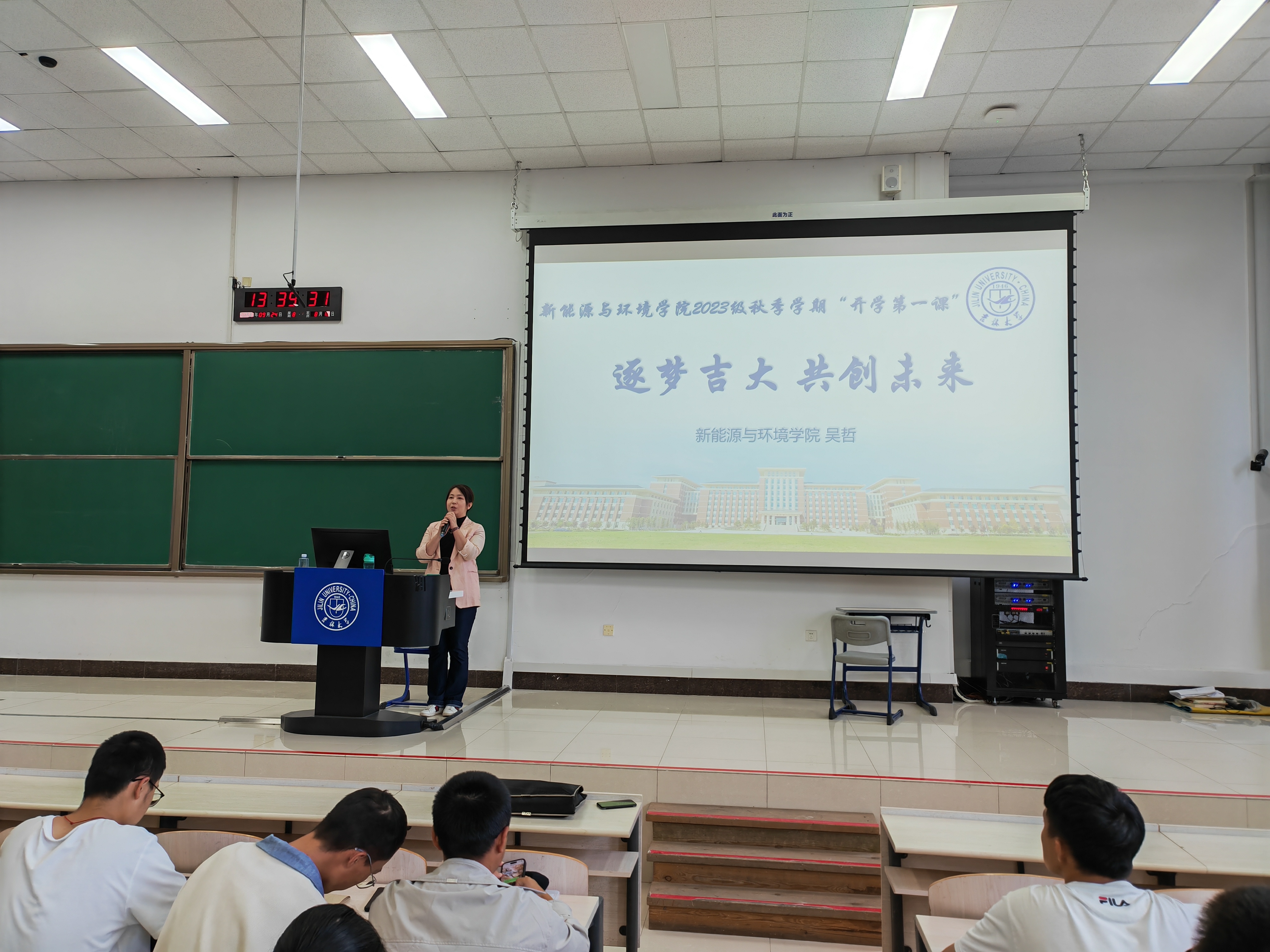 党委副书记兼副院长吴哲以“逐梦吉大 共创未来”为主题,为2023级全体本科新生讲授了“开学第一课”。2023级辅导员姜岳彤参与并主持了此次授课。