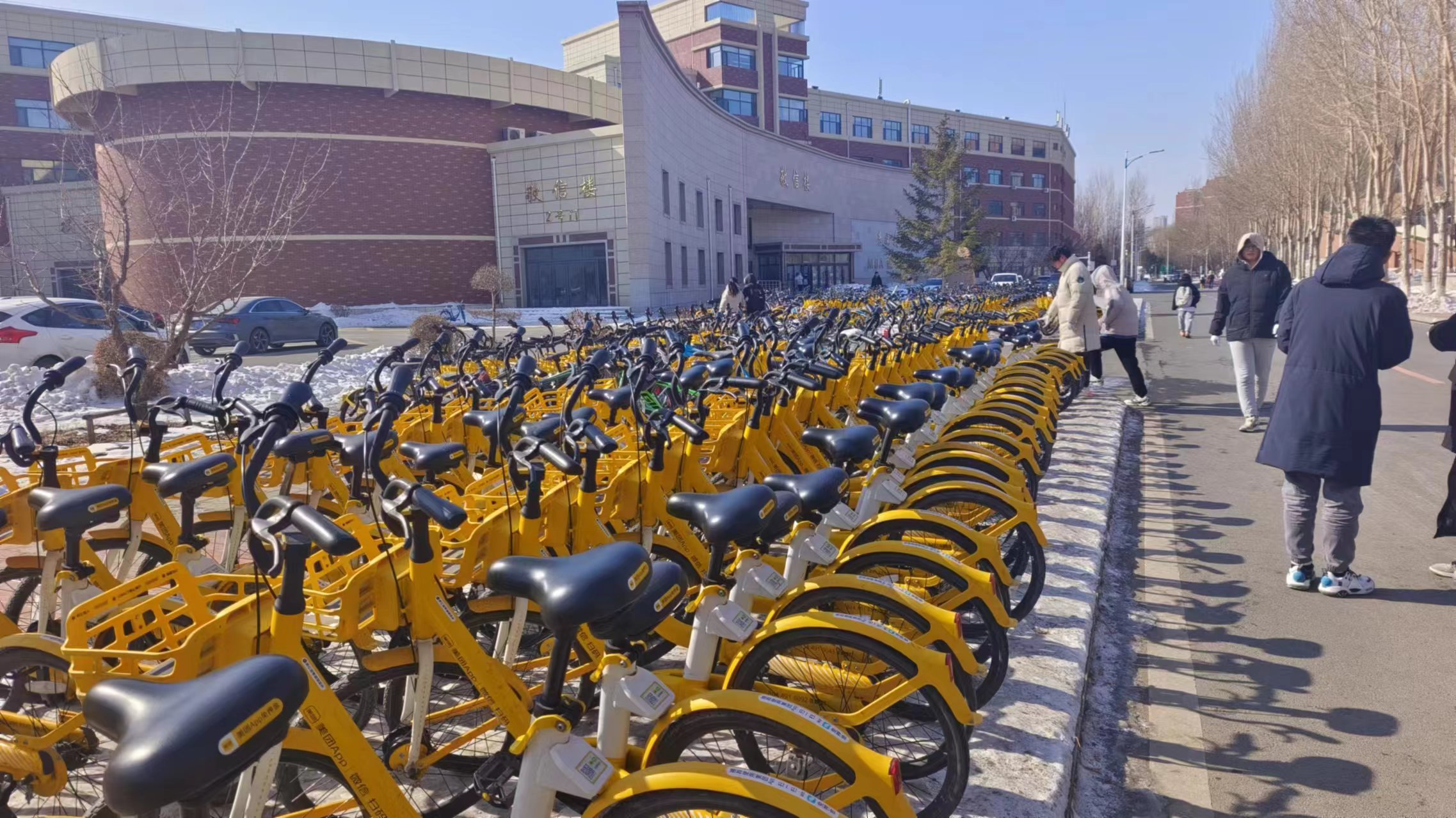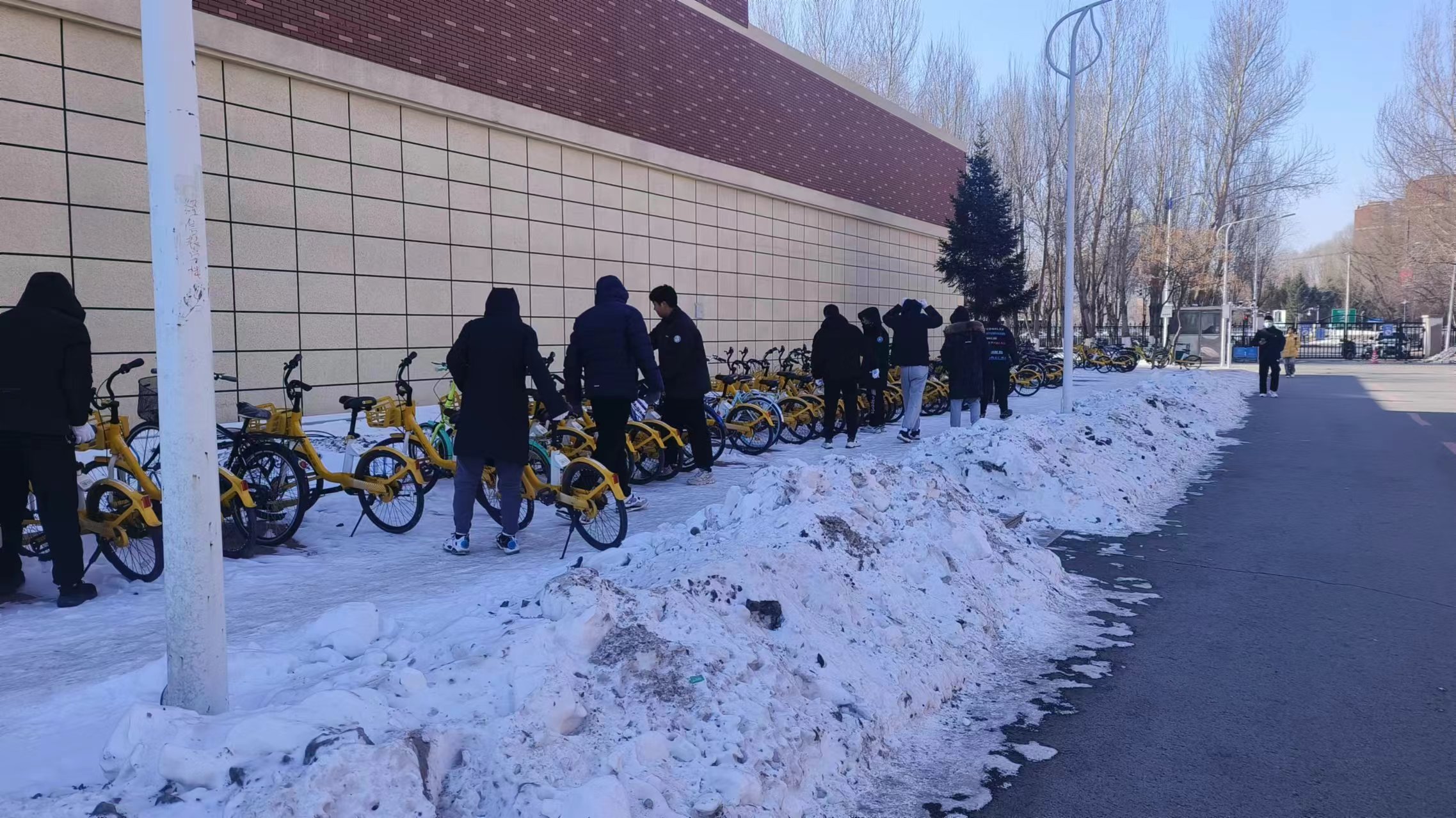 3月3日上午,乐于助人的志愿者们根据校园内共享单车停放密集,较为杂乱的区段,对前卫南区敬信楼的共享单车停放点进行了集中整治。