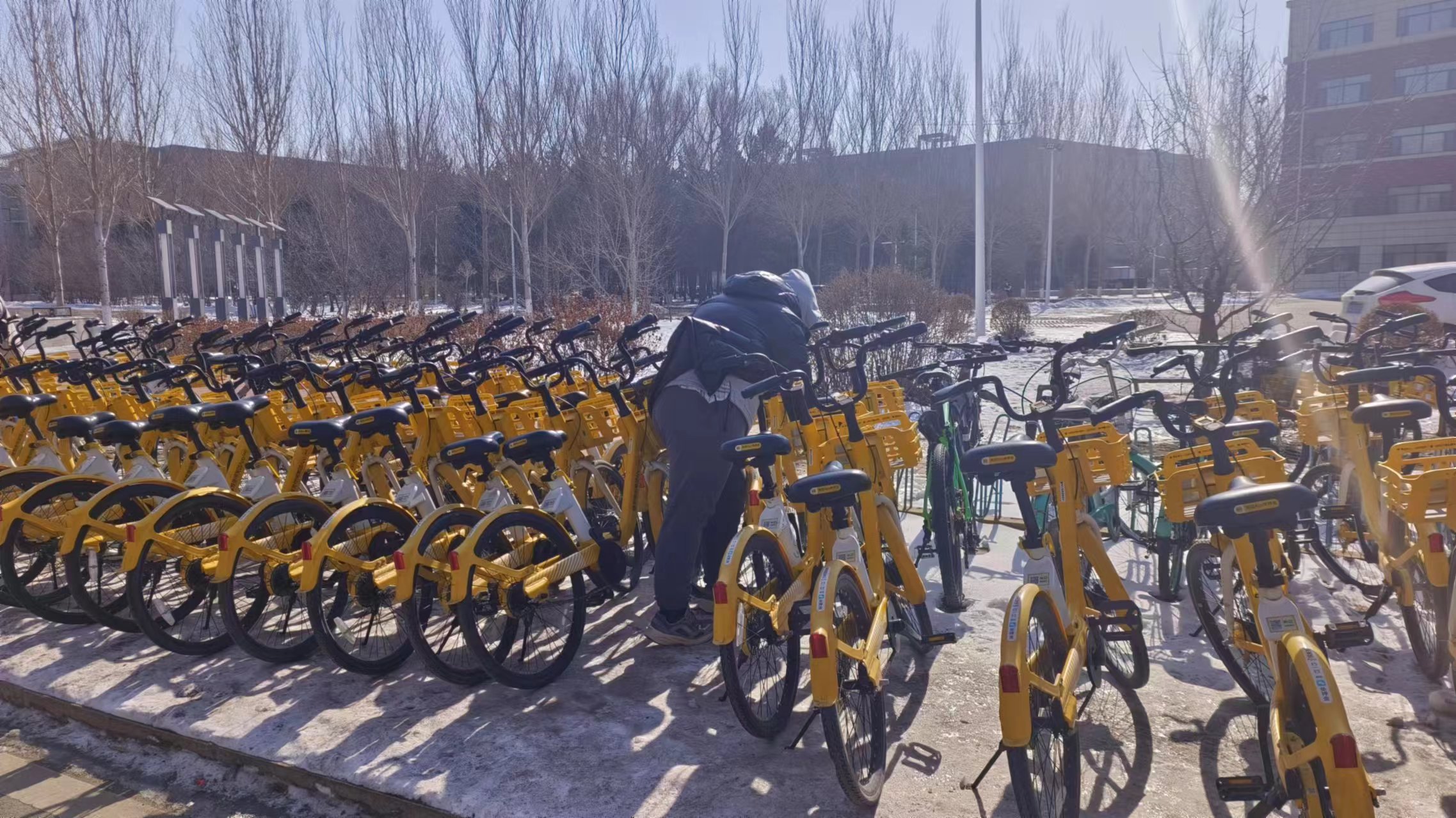整理前的共享单车位置杂乱