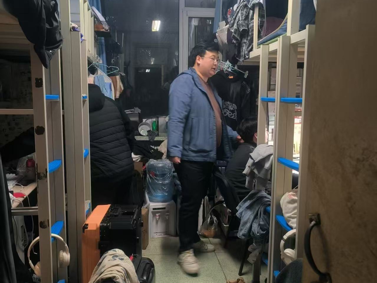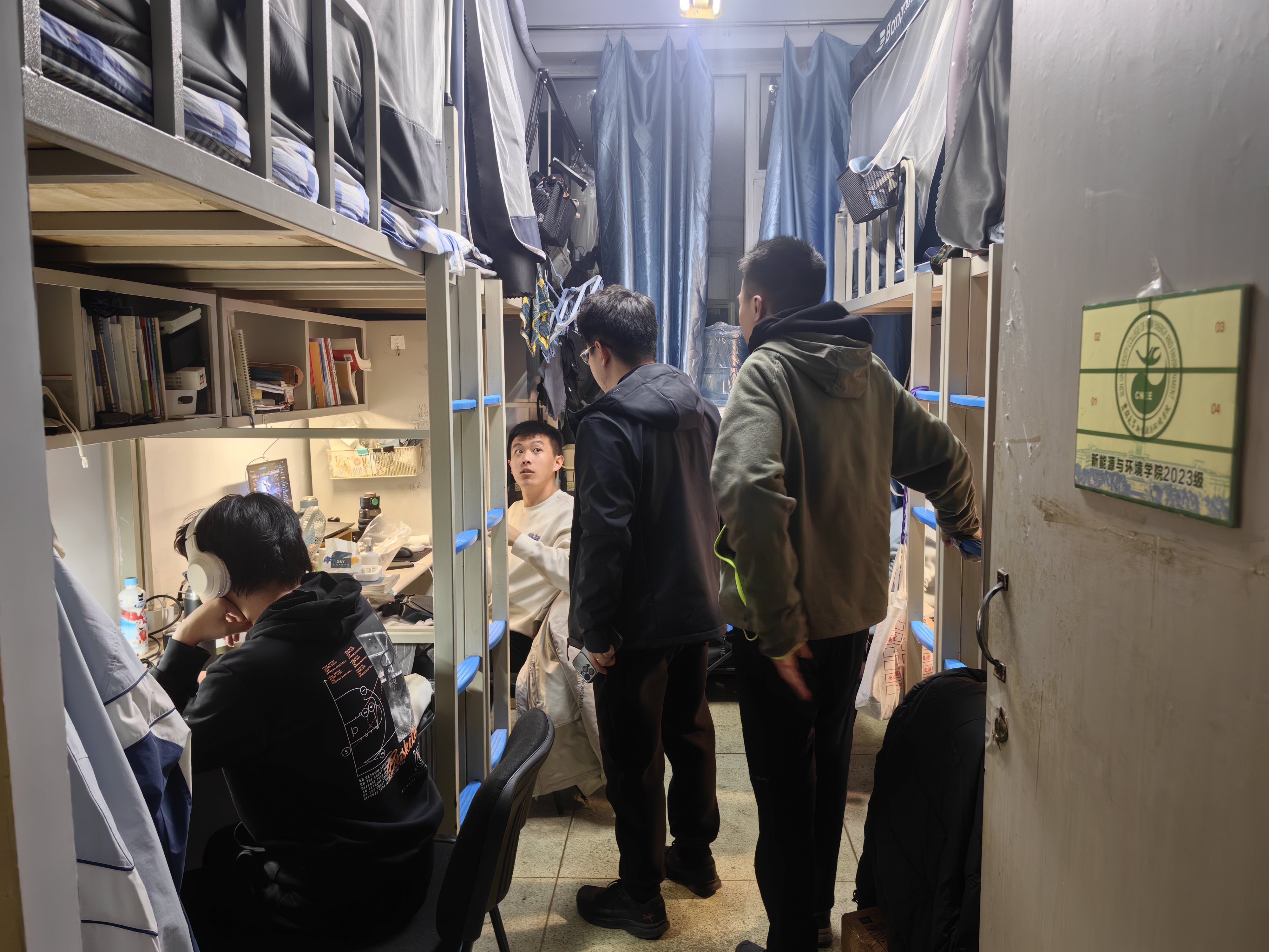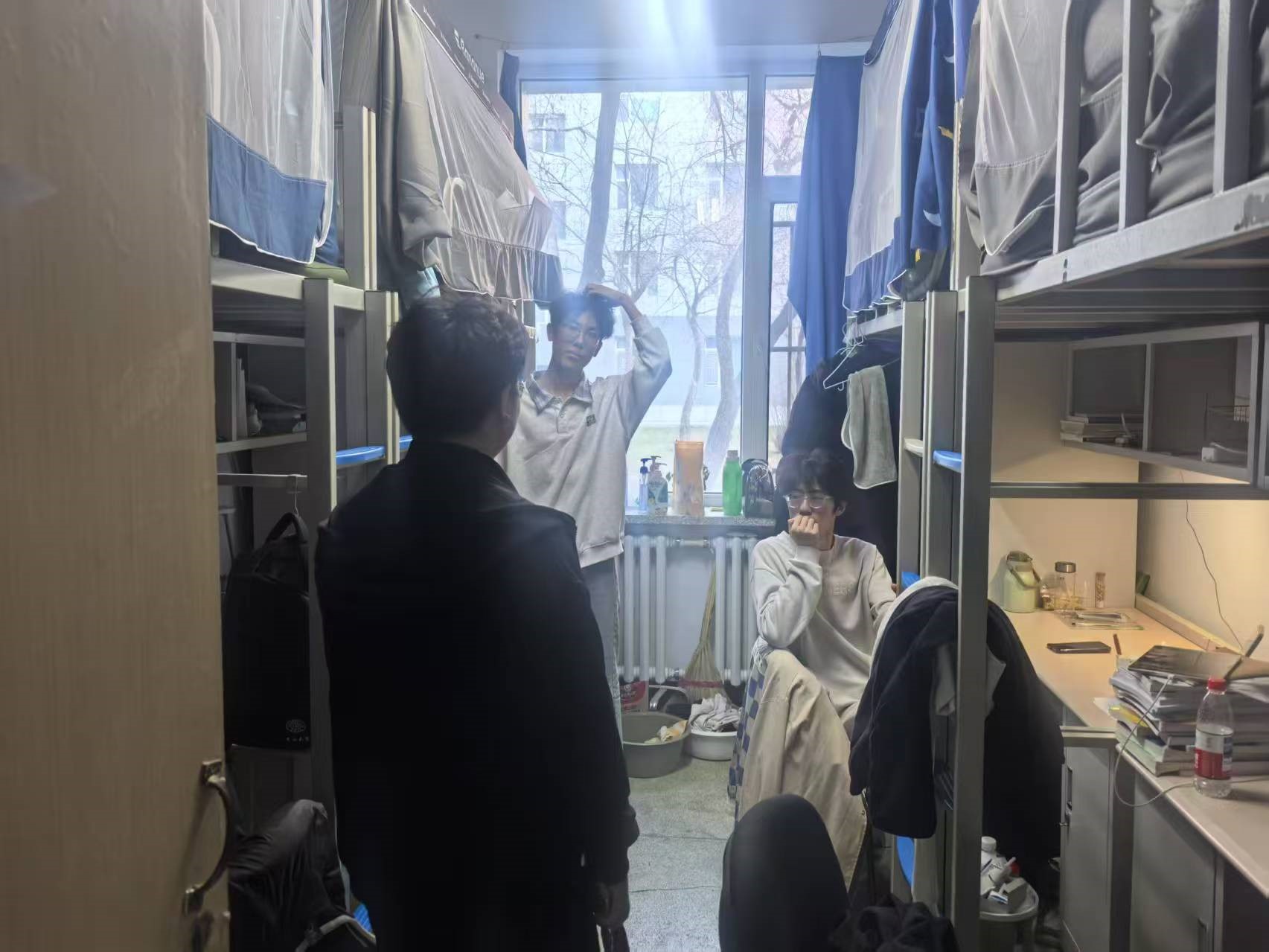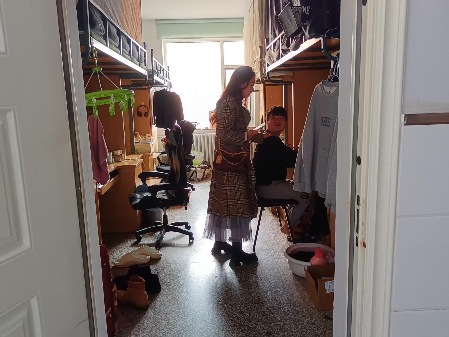 4月22日,2024级新生辅导员助理姜兆轩进入南苑一公寓对寝室卫生、消防安全进行检查,对卫生环境脏乱差的寝室提出批评并督促其尽快整理寝室内务。