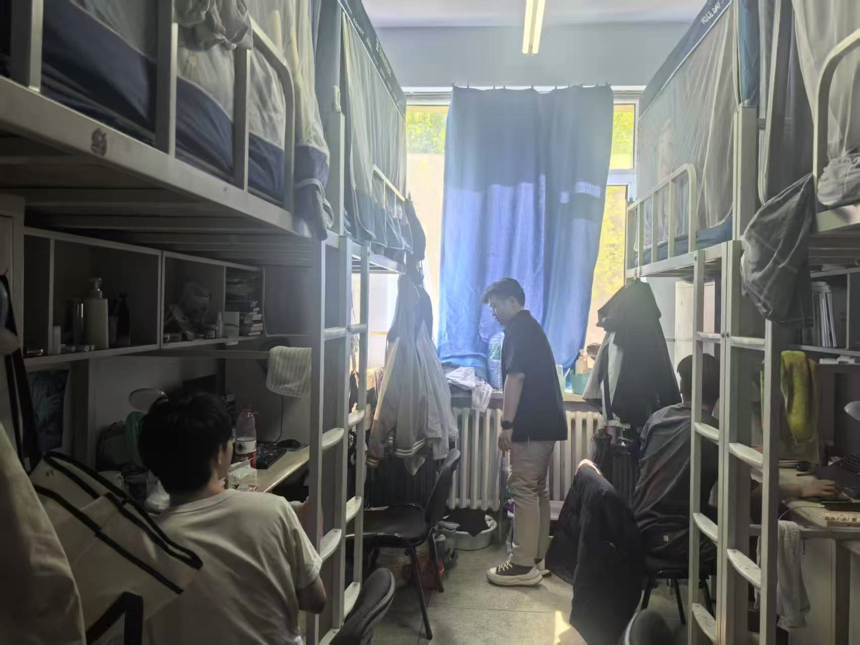 6月12日,2023级辅导员姜岳彤老师进入南苑二公寓寝室检查消防安全和寝室卫生,提醒同学们及时收拾物品并做好期末准备,及时开窗通风保持良好宿舍环境。