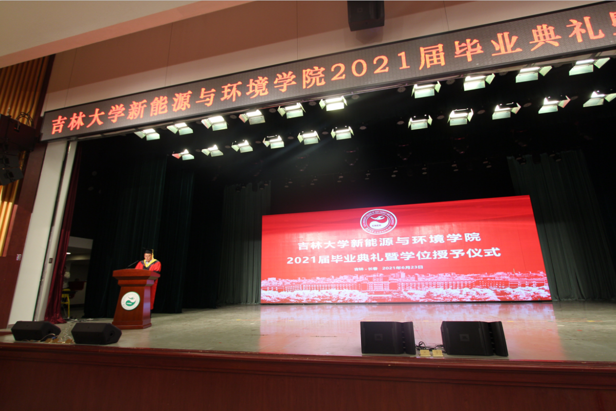 院长许天福、党委书记汪祥松,学术委员会主任赵勇胜,教学委员会主任董德明,副院长花修艺,副院长卞建民,副院长董军,副院长徐军,党委副书记兼副院长吴哲,党委副书记温卓,环境科学系主任王宪恩,地下水科学与工程系主任杜新强以及毕业班主任、教师代表与全体2021届毕业生共同见证这一神圣的时刻。典礼由豪神娱乐城