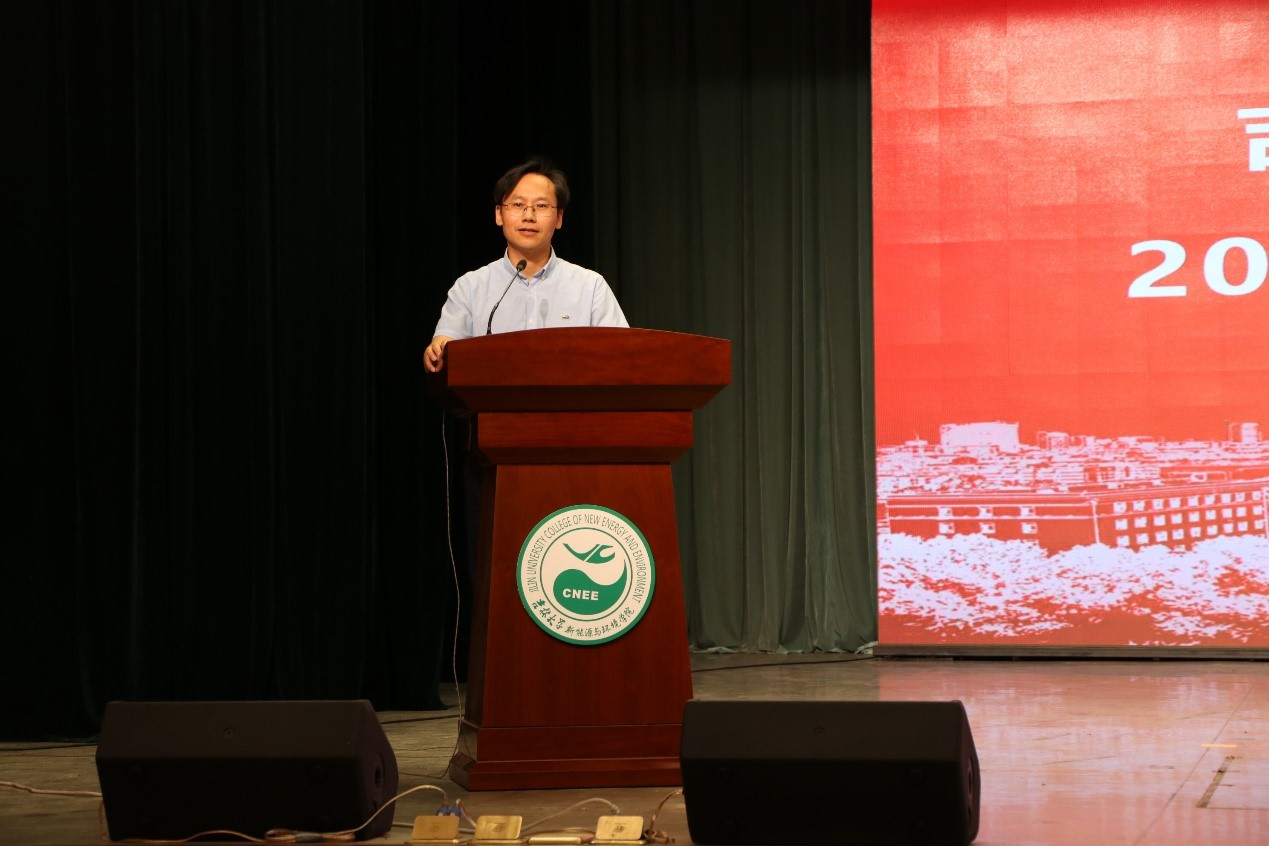 地下水科学与工程系杜新强老师发言,他为毕业生们送上鼓励和祝福,鼓励同学们将“求实创新、励志图强”的校训精神记在心中,带在身上,鼓励同学们树立远大的理想和目标,将理想追求融入到党和国家的事业中,要有坚定的信念,也要有克服困难的勇气以及终身学习的动力,为祖国的强大不懈奋斗,在实现中国梦的伟大事业中绽放青春的光彩,实现可期的未来!