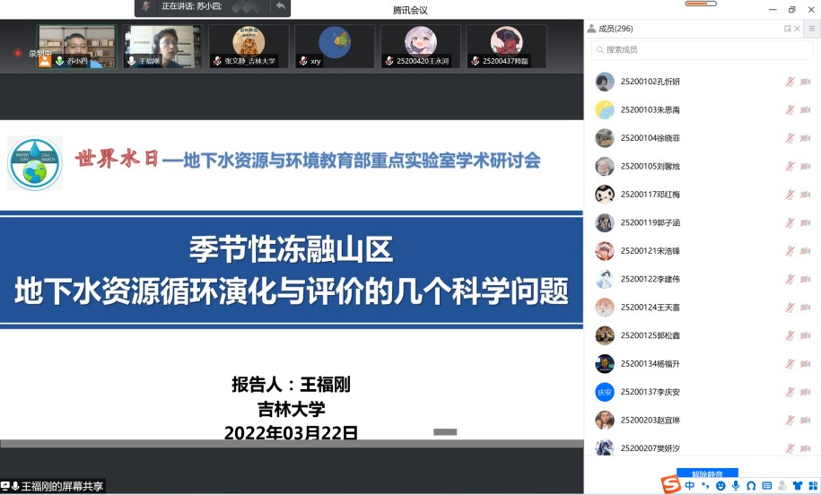 、水资源与环境研究所与地下水资源与环境教育部重点实验室共同组织召开了迎接2022年世界水日学术交流会。会议由水资源与环境研究所所长苏小四教授主持,豪神娱乐城