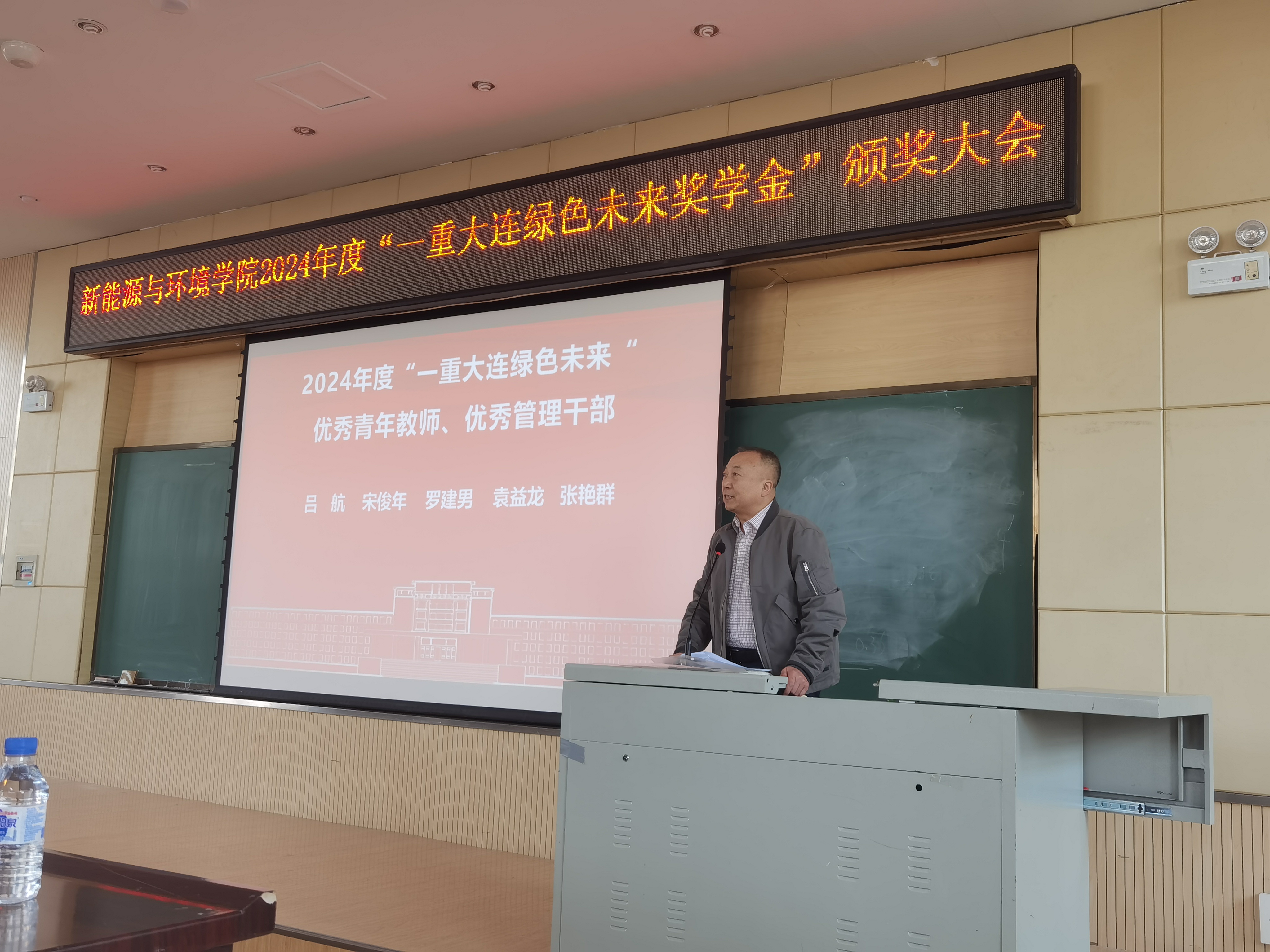 在北区理化楼隆重召开2024年度“一重大连绿色未来奖学金”颁奖典礼。会议由徐军副院长主持。全体教职工、获奖学生参加了典礼。