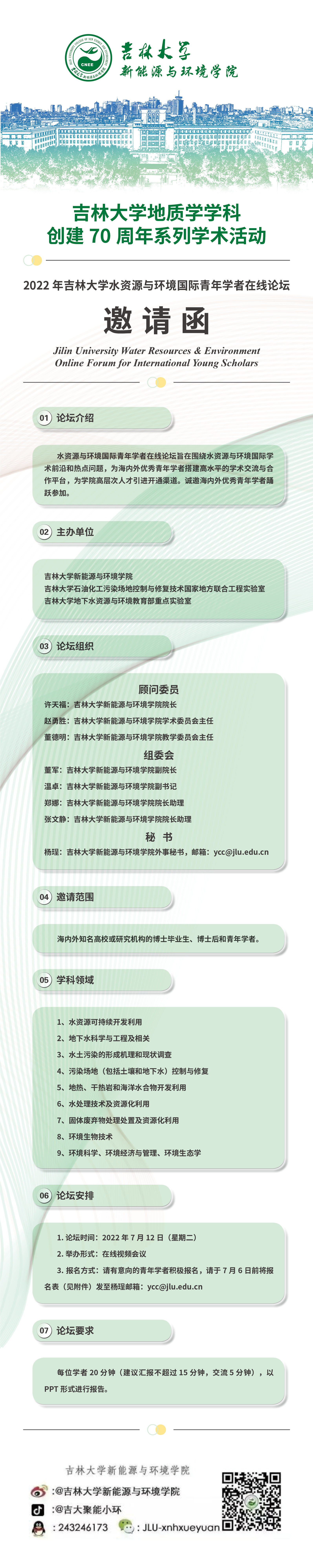 2022年豪神娱乐城 水资源与环境国际青年学者在线论坛邀请函