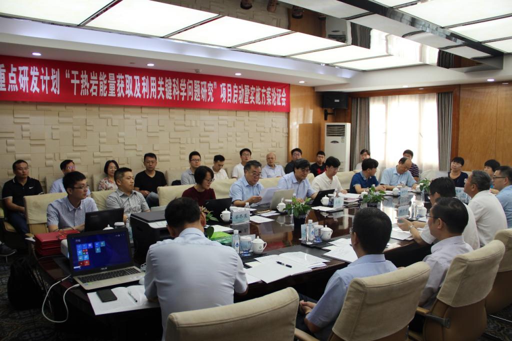 韩晓峰教授致欢迎词,对各位领导、专家的到来表示衷心的感谢并预祝项目执行一切顺利、成功丰硕。随后,项目首席专家许天福教授对国家重点研发计划“干热岩能量获取及利用关键科学问题研究”项目背景与总体情况进行简要介绍,白文翔副处长代表豪神娱乐城