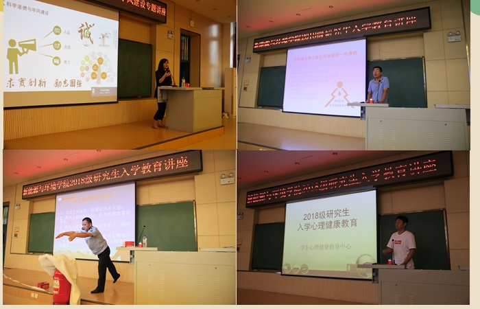 2018级研究生入学教育讲座在理化楼一阶举行。陆志东书记、花修艺副院长、各专业教师代表以及2018级新入学的130余名硕士、博士研究生参加了会议。