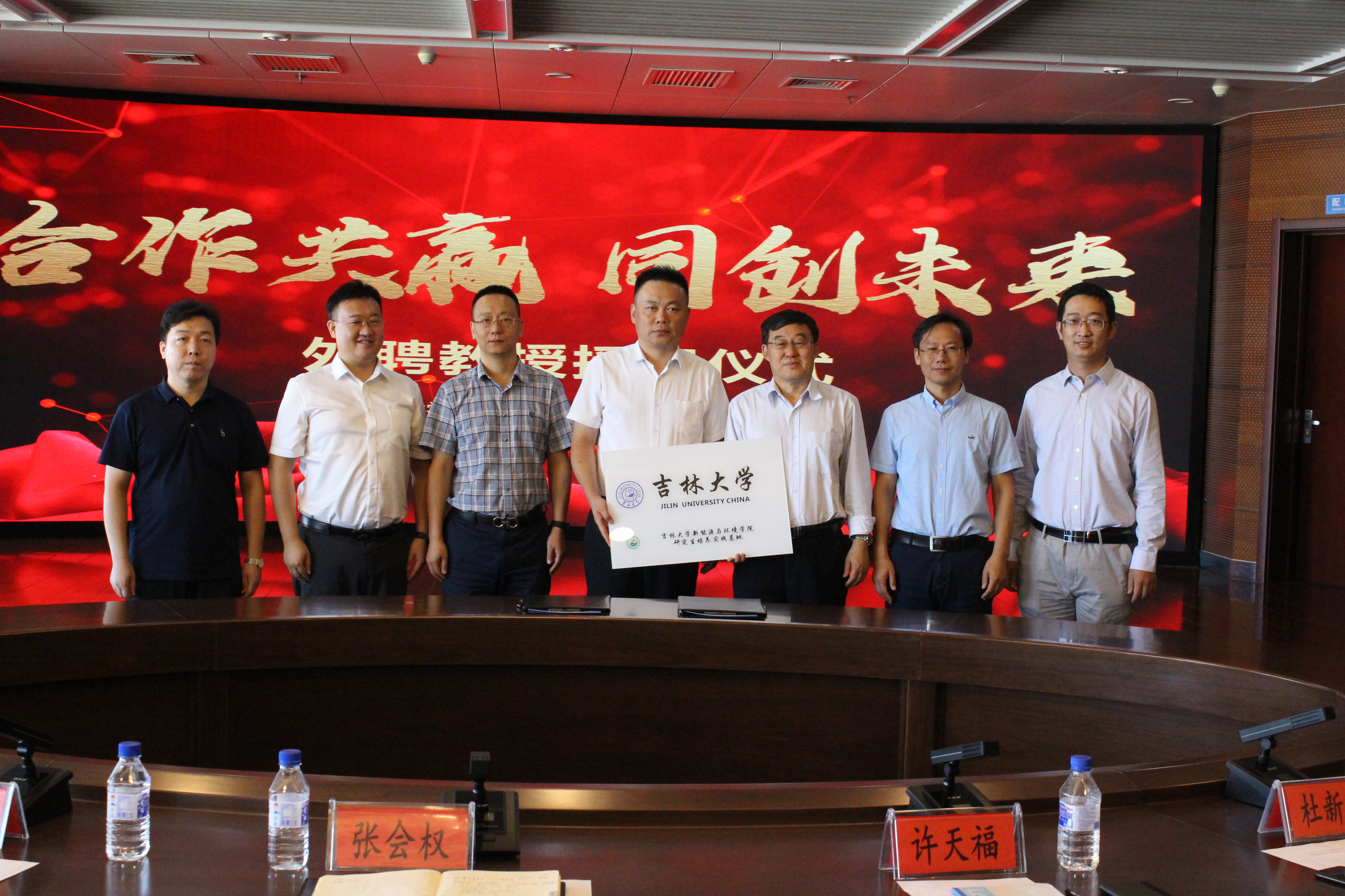 许天福院长亲自为张会权院长、李建国总工、孙宏亮主任颁发了校外合作导师聘书。本次会议的圆满结束,标志着两院研究生联合培养实践基地的正式成立,双方建立良好合作基础,约定共同推进长春市新型城市雨洪管理体系的建设和完善。