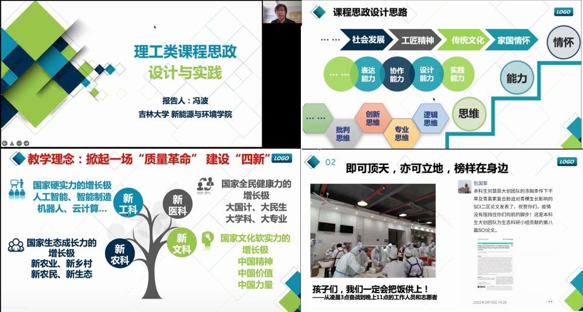 冯波老师从“课程思政与新工科建设、课程思政设计的思路、课程思政实践”三个方面进行介绍,首先介绍了课程思政提出的时代背景,结合专业特点剖析了理工科课程思政建设的目标,以及和新工科建设的关联性,然后从“思维——能力——情怀”三个方面介绍了理工科类课程思政的设计思路,最后结合不同老师的经典案例呈现了工科类课程思政的实践经验。
