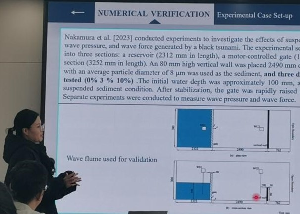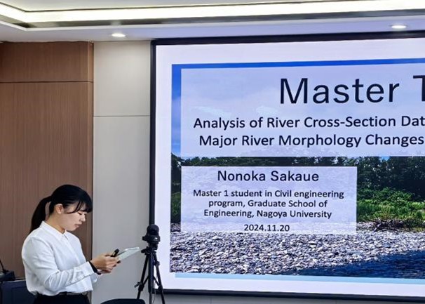 韩淳旭的“尼尔吉水库流域径流变化及影响因素量化”,名古屋大学Nonoka Sakaue的“分析河流横断面数据以阐明砾石河流主要形态变化的原因”,东京大学Yuki Ishikawa的“将遥感流量数据同化到全球水资源模型中”,名古屋大学刘欣的“垂直和倾斜防波堤前波浪诱导冲刷的数值模拟”,东京大学胡阳博士的“使用夜间灯光遥感卫星数据进行全球洪水影响评估”。