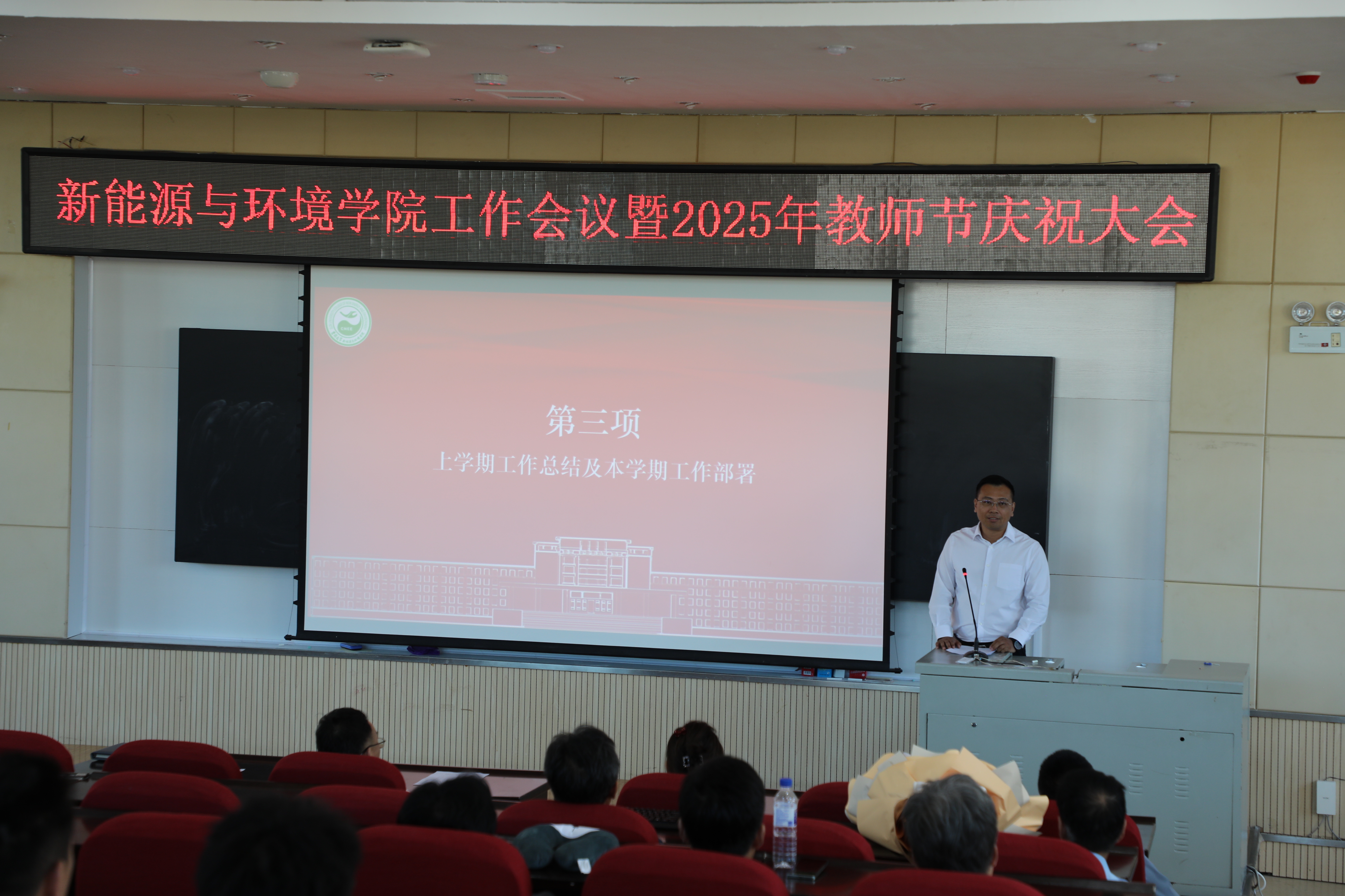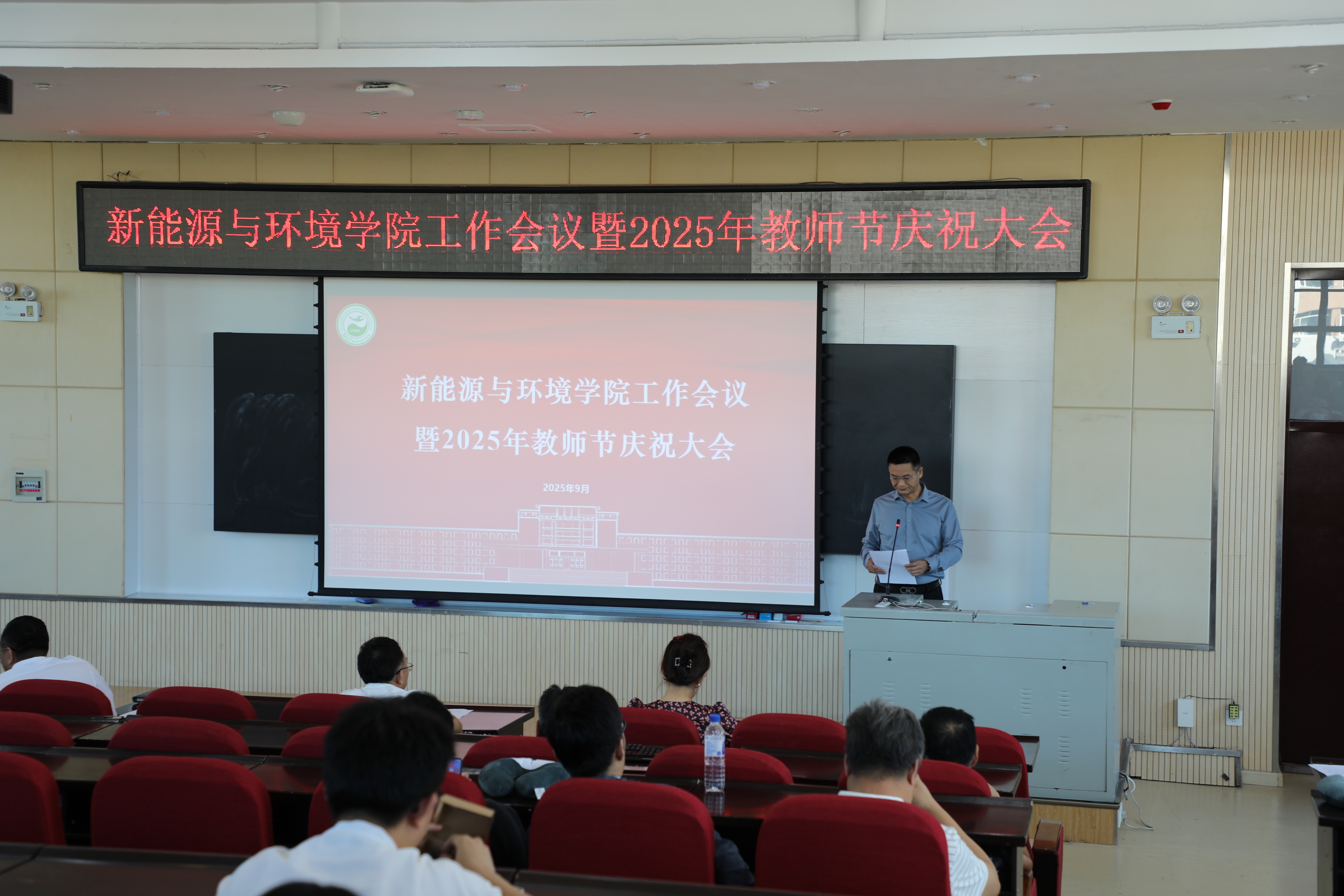 全体教职工在北区理化楼欢聚一堂,共同庆祝第41个教师节。会议由徐军副院长主持,全体教职工参加了会议。