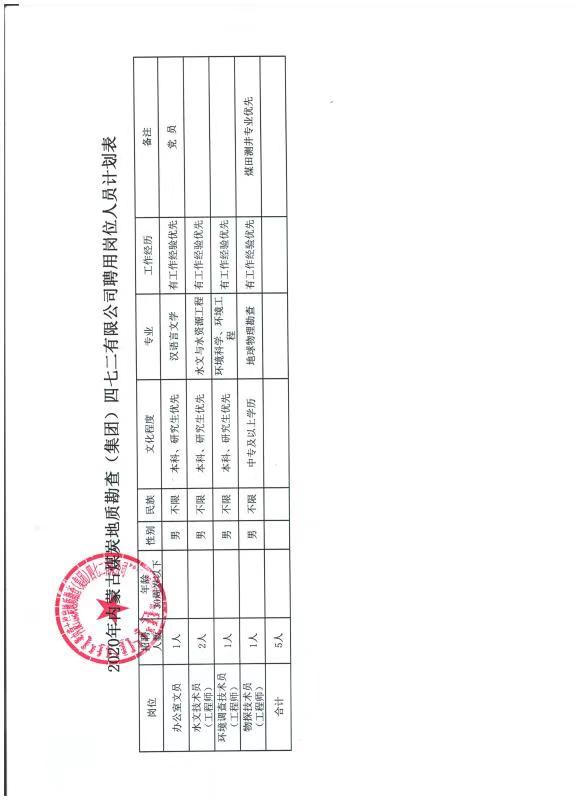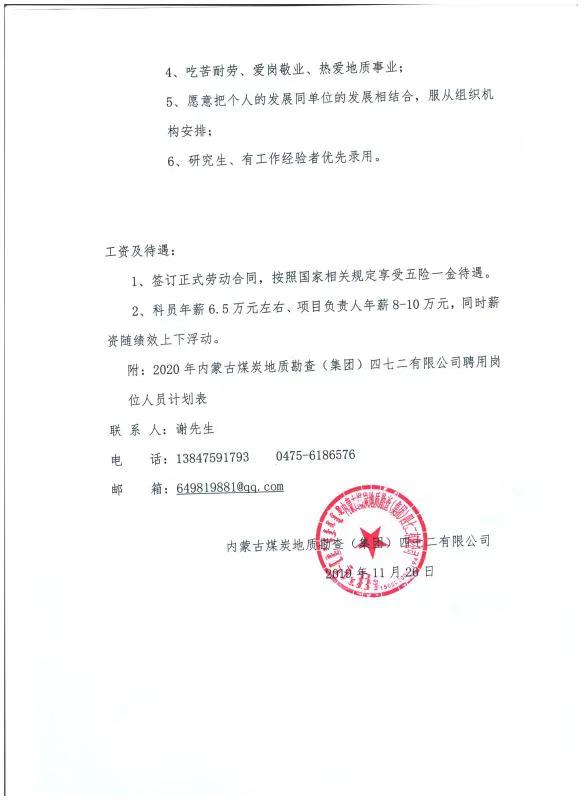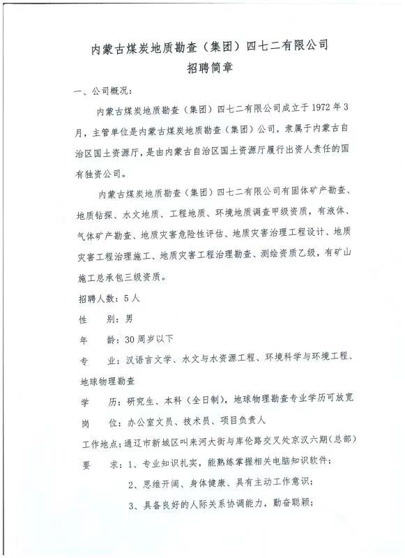 内蒙古煤炭地质勘查(集团)四七二有限公司招聘简章