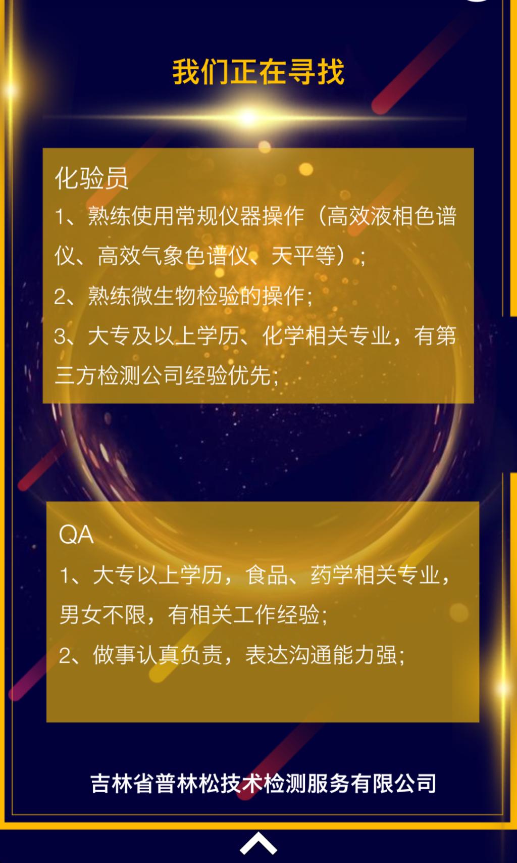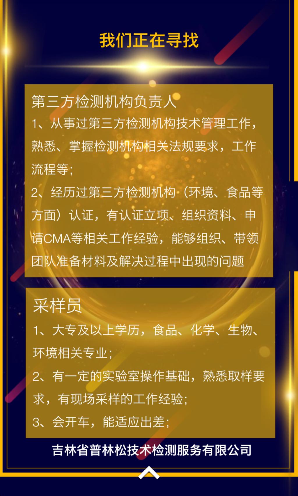 吉林省普林松技术检测服务有限公司招聘简章