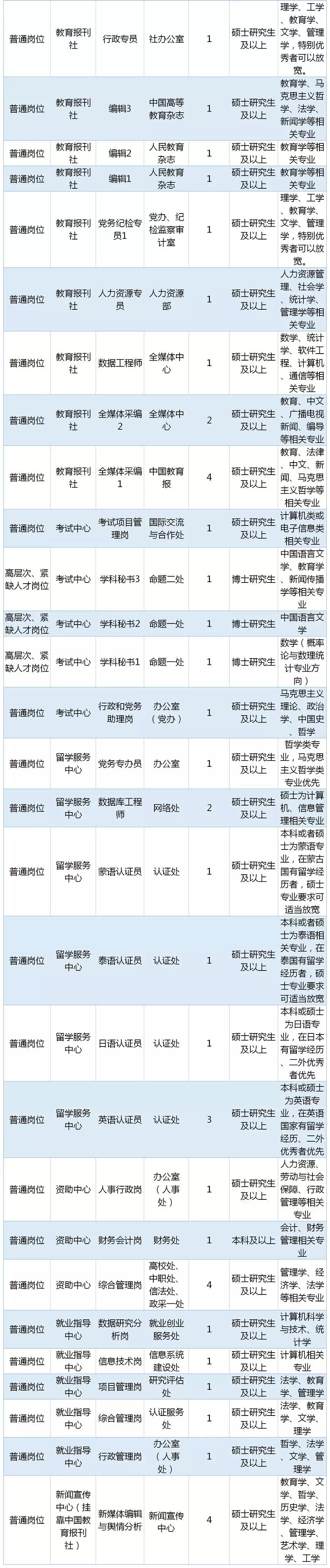 考察、体检合格的拟聘用人员名单统一在“教育部直属单位公开招聘平台”进行公示。