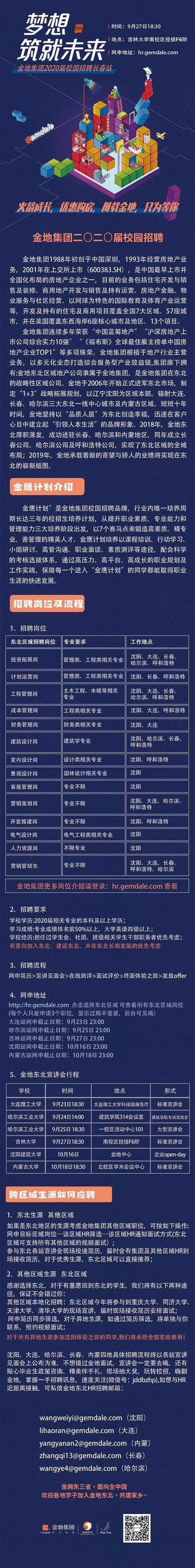 金地集团2020届校园招聘|长春站