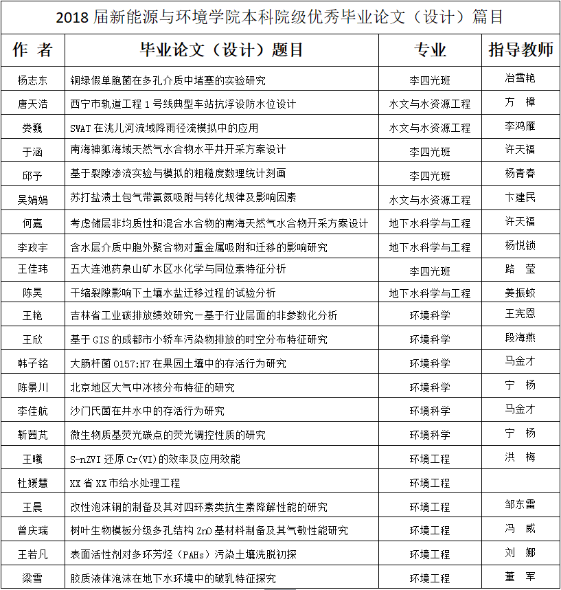 2018届豪神娱乐城 本科院级优秀毕业论文(设计)篇目
